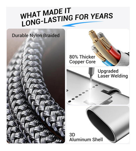 Este cable de carga 3 en 2 de Temdan es compatible con todos los modelos de iWatch Ultra y iPhone desde el 16 hasta el 12. Con su diseño multifuncional, puede cargar hasta 3 dispositivos simultáneamente utilizando un adaptador USB C/A. Hecho de material de nylon trenzado, ofrece durabilidad y flexibilidad excepcionales, habiendo superado más de 45,000 pruebas de estiramiento. La tecnología de soldadura por láser y el conector de aleación de aluminio 3D mejoran su vida útil y resistencia al calor. El cable de 4 pies es ligero y portátil, perfecto para viajar, pero también adecuado para uso doméstico y de oficina.
