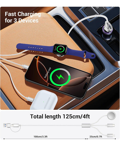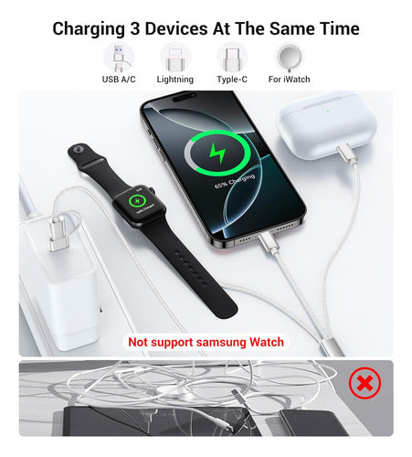 Cable De Carga 3 En 2 Temdan Para Apple Watch Y iPhone Blanco