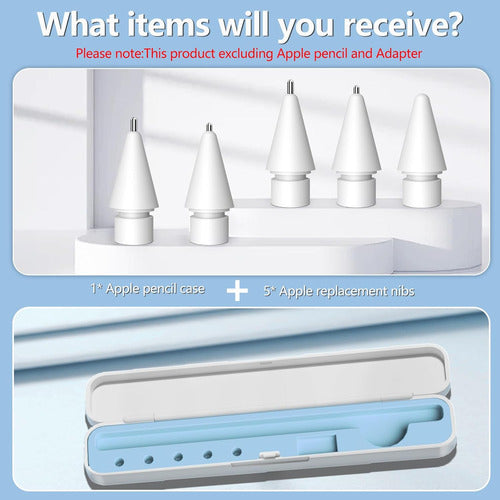 Esta es una caja de almacenamiento diseñada especialmente para Apple Pencil. Te ayuda a guardar tu Apple Pencil, punta de lápiz, manga de punta de lápiz y adaptador de manera ordenada en la caja con su propia ranura dedicada. El exterior está hecho de material ASB de alta calidad, el diseño de la tapa superior esmerilada añade a la sensación de uso, y el interior está hecho de silicona líquida de alta calidad. Recibirás 5 de nuestras puntas de repuesto más recientes, diseñadas con bordes redondeados y puntas de metal para un control más preciso y una experiencia de escritura más suave. Compatible con Apple Pencil 1 y 2 generación, Apple Pencil Pro, Apple Pencil USB-C, Logitech Crayon digital pens, Ipad Pro 11 pulgadas 9.7 pulgadas 10.5 pulgadas 12.9 pulgadas.