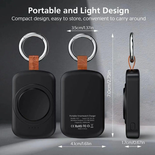 Este cargador portátil está diseñado para Samsung Watch 8/8 Classic/7/7 Ultra/6/6 Classic/5/5 Pro/4/3, Active 2/Active 1, garantizando compatibilidad con relojes nuevos y antiguos. Posee una batería incorporada de 1800mAh que puede cargar tu reloj de 1 a 3 veces. Con 4 indicadores LED, puedes verificar fácilmente el nivel de batería (0-25%-50%-75%-100%), proporcionándote energía móvil durante todo el día. Ideal para viajes, ejercicios o actividades al aire libre prolongadas. Simplemente coloca el reloj en el centro del área de carga y presiona el botón de encendido para comenzar a cargar de inmediato. Los imanes incorporados mantienen el reloj en su lugar, asegurando que los contactos de carga estén perfectamente alineados para una carga eficiente. Una vez que la carga está completa, el cargador portátil para el reloj Galaxy se puede apagar presionando dos veces el botón de encendido; si no se requiere operación manual, el cargador del reloj Galaxy se apagará automáticamente después de 60 segundos de inactividad. El cargador del reloj Galaxy Ultra de 1800mAh mide 7 x 4.5 x 1.5 cm (2.7*1.8*0.6 in), lo que es lo suficientemente pequeño para caber en un bolsillo o una pequeña cartera. El cargador del reloj viene con un llavero y elimina la necesidad de un cable de carga, lo que lo hace perfecto para viajar y llevar. El paquete incluye: 1*Cargador portátil para el reloj Samsung Galaxy, 1*Cable de carga USB-C (1 metro), 1*Manual de instrucciones. Es muy adecuado como regalo de Navidad, regalo de Año Nuevo, regalo del Día de San Valentín, regalo del Día de la Madre, regalo del Día del Padre, etc. para dar a familiares y amigos en días especiales.
