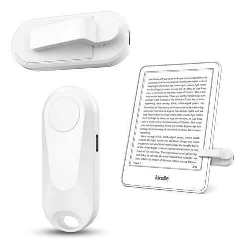 Este innovador control remoto de páginas es compatible con una amplia gama de lectores de ebooks y tabletas, incluyendo Kindle Paperwhite, Kindle Oasis, Kobo e iPad. Permite un cambio de página sin contacto con el dispositivo, con solo un clic. Cuenta con botón de silencio para lecturas nocturnas sin distracciones. Sencillo de usar, solo necesitas engancharlo mientras lo usas y retirarlo cuando no lo necesites. Nota: soporta únicamente avance de página, no retroceso. Para conseguir un funcionamiento óptimo, desactiva la función de desplazamiento en la aplicación de lectura de tu dispositivo. No requiere de conexión WiFi ni Bluetooth para su uso y es compatible con todas las pantallas táctiles capacitivas. Por favor, empareja antes de usar el control remoto.