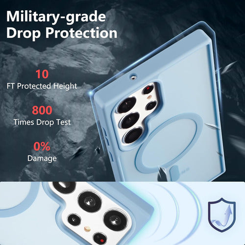 Esta funda RALEAVO para Samsung Galaxy S23 Ultra cuenta con una fuerte atracción magnética que hace que la carga inalámbrica sea más rápida y estable. No solo es compatible con Magsafe, sino también con otros accesorios magnéticos como billeteras, paquetes de baterías y soportes para automóviles. Diseñada con una parte trasera dura translúcida y bordes de goma suave, esta funda para S23 Ultra luce elegante y clásica, y ofrece una sensación al tacto amigable con la piel. Las orillas elevadas de la cámara y la pantalla pueden prevenir eficazmente los rasguños, y la parte trasera de acrílico duro y las cuatro esquinas elevadas fortalecen la función a prueba de golpes. Esta funda delgada y ligera para Samsung S23 Ultra no afectará el uso normal y es fácil de guardar en bolsillos o bolsos.
