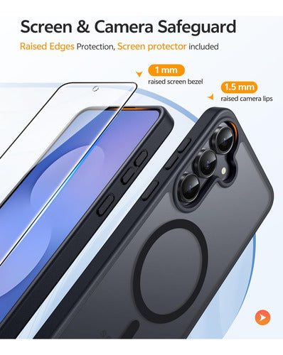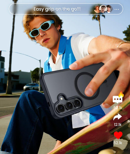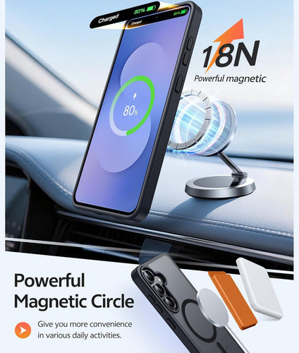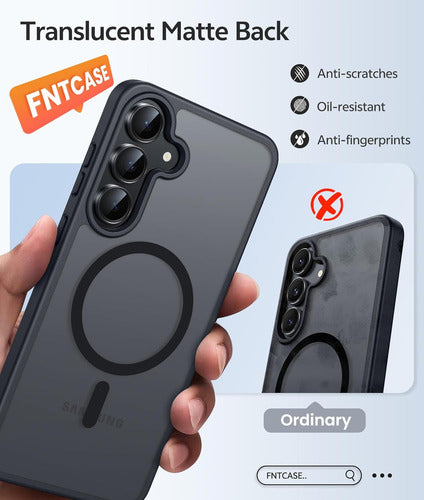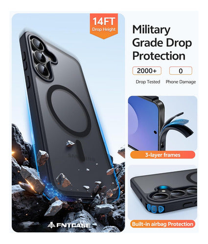 Esta funda FNTCASE es compatible exclusivamente con Samsung Galaxy S25 FE de 6.7 pulgadas. Cuenta con una fuerte atracción magnética para cargadores magnéticos y otros cargadores Qi Wireless sin influencia de señal. Tiene 38 super imanes N52 incorporados. Su atracción magnética alcanza los 2400 gf, lo que es casi 7 veces más fuerte que lo ordinario, por lo que no se caerá sin importar cómo se sacuda cuando esté cargando. Viene con un protector de pantalla de vidrio templado que preserva la sensibilidad al tacto original y la claridad HD mientras proporciona una protección excepcional contra rasguños y caídas. La funda tiene una protección contra caídas de grado militar de 14FT. Está hecha con policarbonato rígido y parachoques de TPU a prueba de golpes flexibles alrededor del borde, y cuenta con 4 airbags de esquina incorporados para absorber el impacto. La funda tiene una textura mate y utiliza material de PC translúcido de alta calidad sin cubrir el logotipo. La superficie mate proporciona una sensación cómoda al tacto y la capa nano-antioxidante puede prevenir eficazmente las manchas y los rasguños.