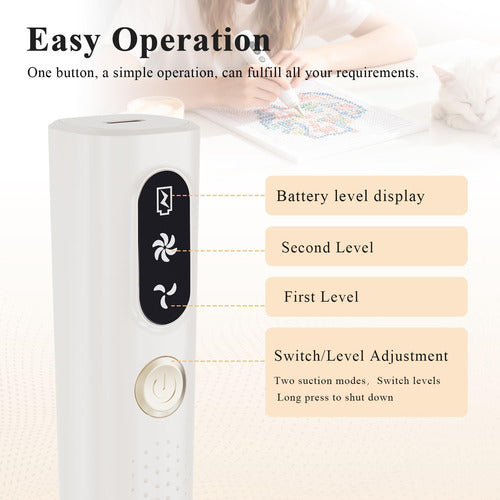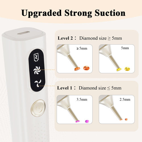 El lápiz de pintura de diamantes Haroopet es una herramienta revolucionaria que no requiere cera y es capaz de recoger una amplia gama de diamantes, desde los estándar de 2.5mm, 3mm, 5mm hasta gemas especiales más grandes. Este lápiz es completamente inalámbrico, lo que te permite trabajar en tus creaciones de arte con diamantes en cualquier lugar sin molestar a los demás. Cuenta con dos niveles de succión potentes y una forma ergonómica que minimiza la fatiga de la mano, lo que lo hace ideal para sesiones largas. Se carga rápidamente a través de un puerto Tipo-C y tiene un indicador LED inteligente que muestra claramente el estado de la batería. Este lápiz es un regalo perfecto para los fanáticos del arte con diamantes y puede elevar cualquier kit de arte con diamantes para adultos, especialmente aquellos con grandes gemas especiales.