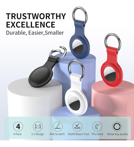 Descubre la manera de proteger y personalizar tu Apple AirTag con el conjunto de 4 fundas con llavero en suave silicona.